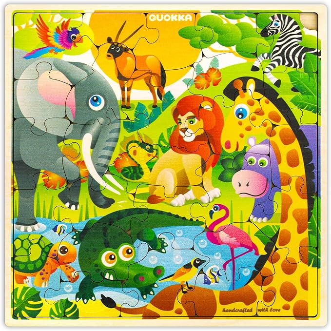 QUOKKA Wooden Africa Puzzles for Kids Ages 3-5 – 28 Pieces Toddlers Kids Puzzles Ages 4-8 Year Olds – Wood Africa Toys for Children 6-8 yo