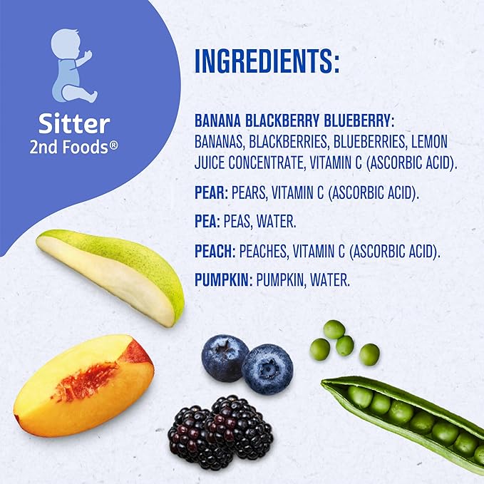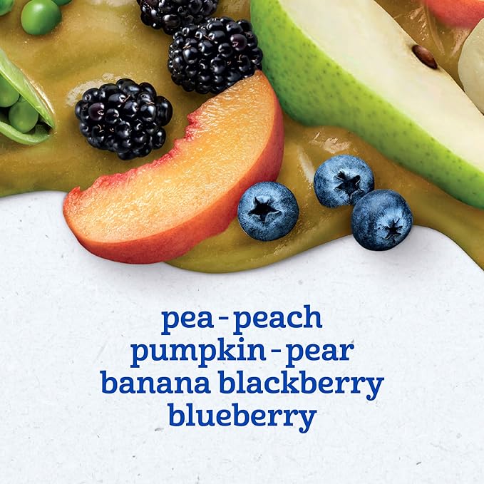 - VARIETY PACK: This nutritious baby food variety pack comes with 5 fruit and veggie purees: banana blackberry blueberry, pear, pea, peach, pumpkin