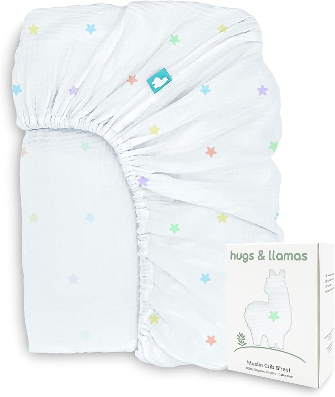 hugs & llamas | 100% Organic Cotton Muslin Fitted Crib Sheet | Premium Baby Crib Sheets for Boys & Girls Crib Fitted Sheet | Organic Crib Sheets Girl & Boy Crib Sheets Neutral | Crib Mattress Sheet