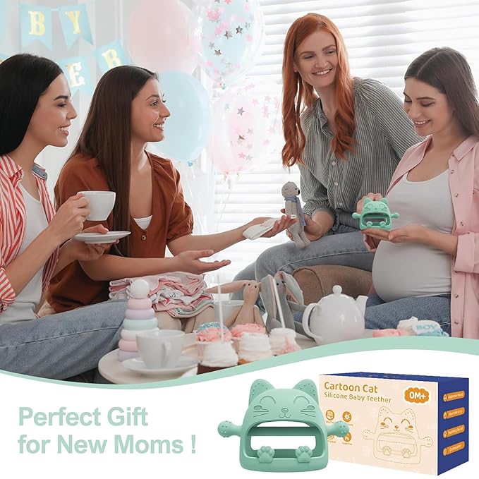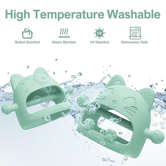- 【Teething Toys For Babies 0-6 Months】Our cartoon cat baby teether is specially designed for newborns, the teether toys imitates a nipple shape on both sides,which may help babies transition from breastfeeding or bottle feeding to chewing on a teething toy,and soft silicone touch points on the top are designed to accommodate baby's bite in different directions. This design element can provide a familiar feel for babies and make them more comfortable with the teether