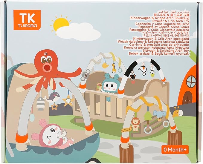 - 【Bendable and Adjustable Clip On Activity Arch】TUMAMA baby stroller toy is equipped with adjustable clips in each side, which makes it more flexible when using. The size of the clip can be adjusted according to the width of the stroller/crib/baby seat, which is suitable for most strollers/cribs/baby seats. Material: this hanging baby toys is made of 100% polyester fiber. It is recommend hand washing or easy to clean with a simple wipe down.