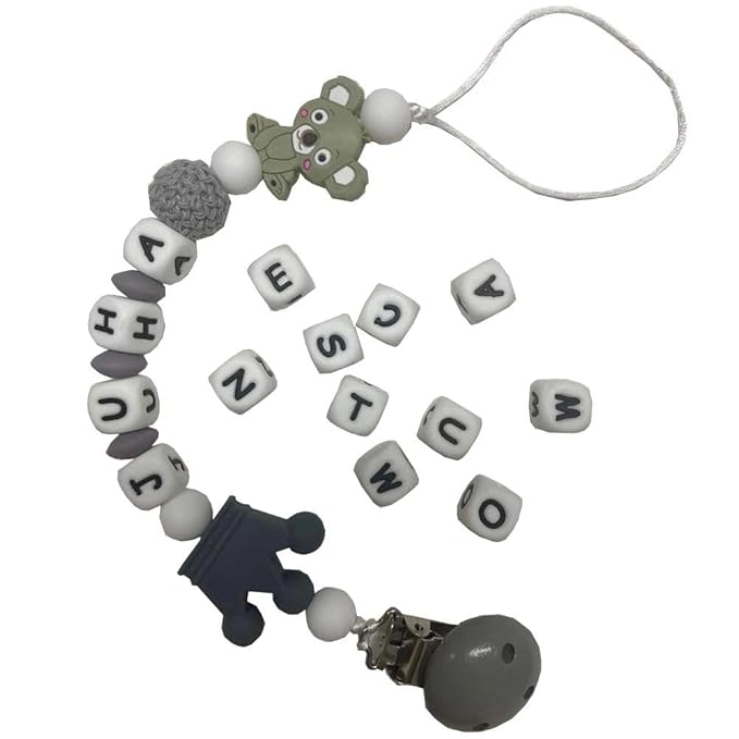 - 💖Personalized pacifier clip makes a great and unique choice for a gift. All beads including the letters are made from high quality, food grade silicone,Natural beech wood, Stainless Steel Clips