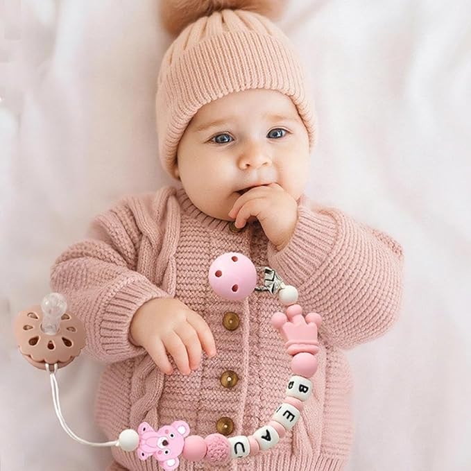 - 💖This handmade newborn soother clip features a personalized name on a pacifier chain, making it both functional and stylish.