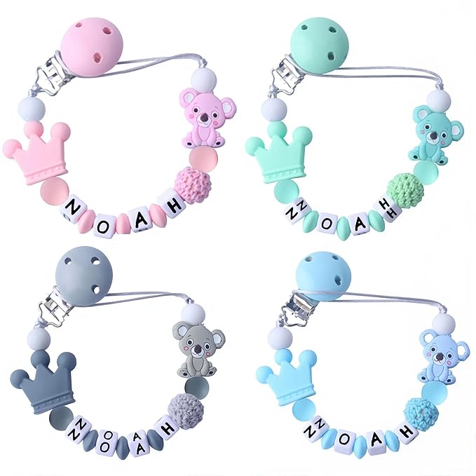 Personalized Koala Pacifier Clip with Name Custom Silicone Pacifier Clips Baby Boy Girl Gift (Koala)