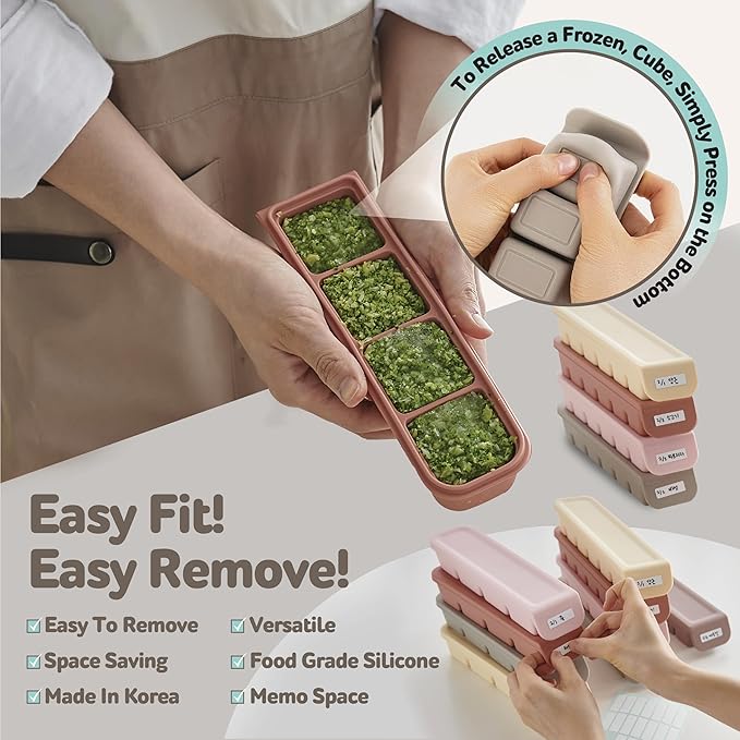 - Slim and Compact Design: These silicone freezer containers are available in 4, 6 or 12 compartments, featuring a stackable, ultra-slim and ergonomic design for easy storage. The ultra-wide area which receives cold air ensures a faster freezing process of the contents!