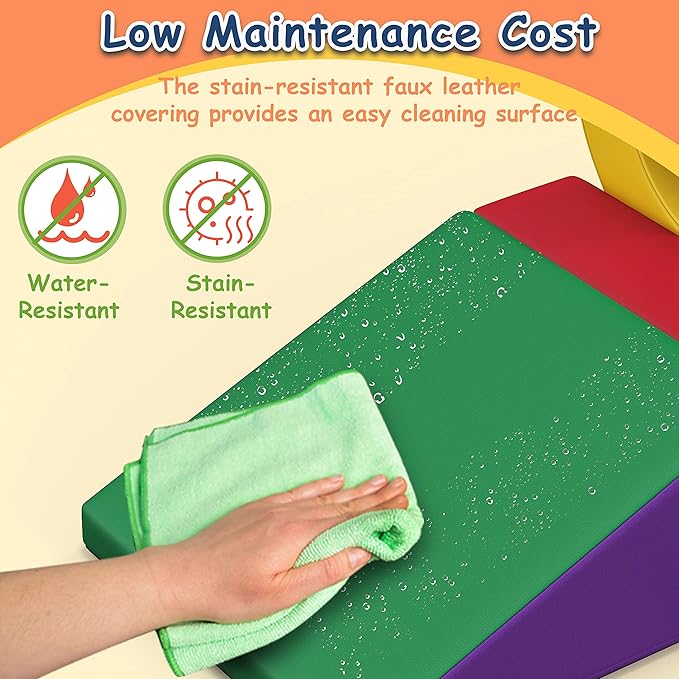 - SOFT FOAM CLIMBING BLOCKS: The soft play equipment are made of soft and durable foam material that is full covered by friendly soft artificial leather. This material is easy to clean and maintain, and it does not emit any unpleasant odors, making it ideal for children to play with