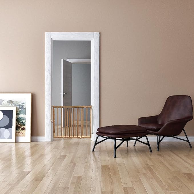 - SOLID WOOD GATE - Our maximum strength baby gate has a latch system that baffles toddlers yet offers one-hand operation for adults. It opens in both directions and has an optional one-way stop bracket to limit opening over stairs. The child safety gate is Juvenile Product Manufacturers Association (JPMA) certified.