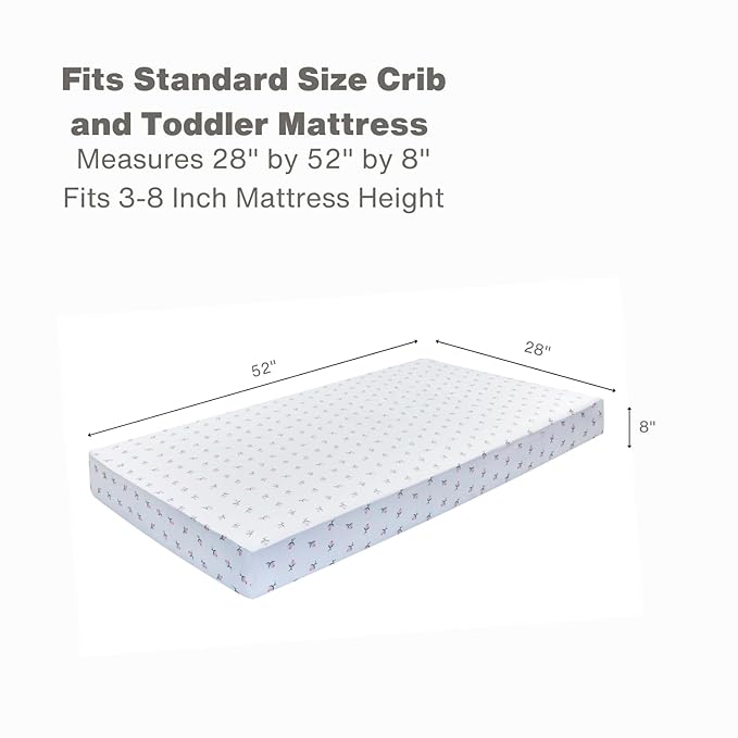 - PERFECT FIT – This set includes two fitted infant sheets sized for a standard crib or toddler mattress (52 in. by 28 in.) and has been tested for the perfect fit. With full elastic trim all around 4 sides, these sheets are easy to use and safely securable with 8 in. deep pockets. (Mattress not included)