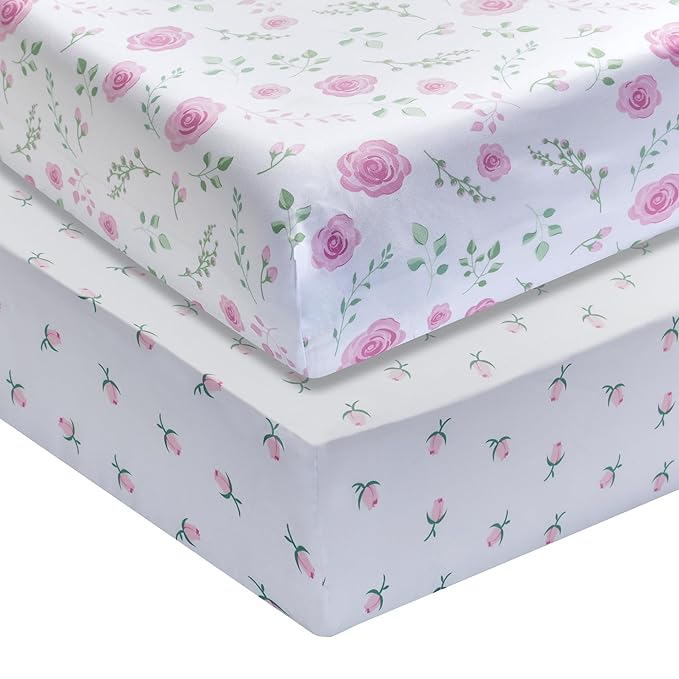 - SOFT, COZY AND COLORFUL – These beautiful fitted crib sheets are perfect for everyday use. With a wide array of colors and patterns available, these soft fabrics are breathable and colorful additions to your little one’s nursery, like these with floral prints in pastel pink! These nursery sheets even come in a convenient pack of 2 at a great value, making this product a must have for your baby registry. Mix and match with fun, printed patterns or soft, muted colors to create a cozy sleeping area