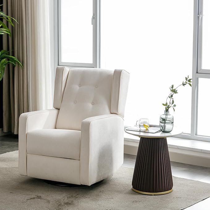 - High Backrest and Cozy Armrest - On the basis of fully relax your arms and body, this manual swivel rocker gliding chair is composed of upholstery button & track arm & a foam soft cushion & butterfly back.
