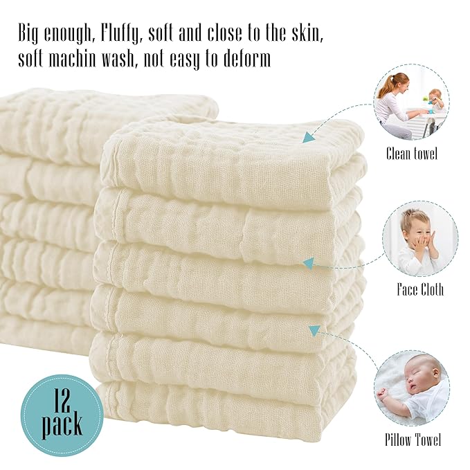 - 【PACKAGE CONTENT】 Baby Essentials Must-Have - 12 pieces muslin burp cloths, 20 x 10 inches.