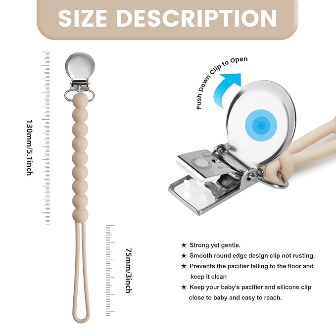 - 【FOOD GRADE STANDARD】Length:23cm Weight: 0.8oz. BPA Free Pacifier Clip. No pvc, cadmium, lead, phthalates