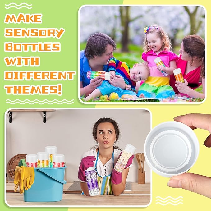 - Practical Sensory Bottle Supplies: there are 16 pieces of empty plastic sensory bottles with white lids, enough quantity and capacity for you to use or place in daily life, family gatherings, dinner parties, picnics, BBQ or other activities