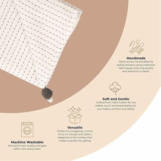 - Hand Stitched - Meticulously crafted with expert hand-stitching, each baby blanket showcases a stunning design that embodies both artistry and attention to detail, making it a cherished heirloom piece for your little one