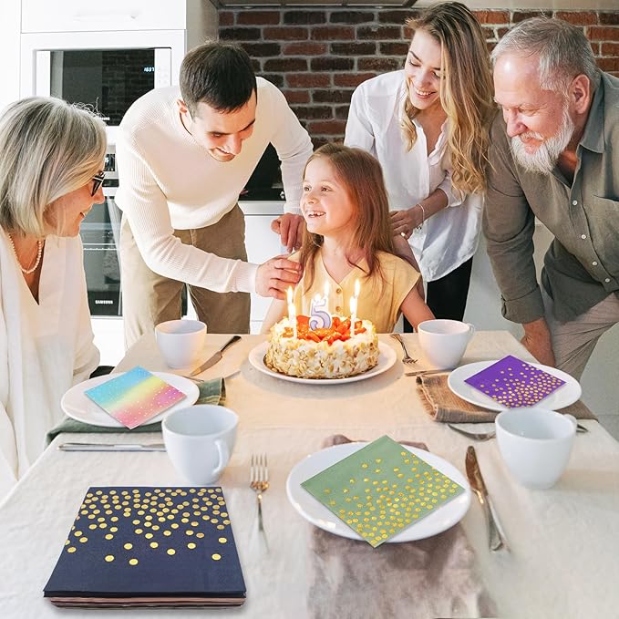 - Our blue party napkins are printed with a delicate metallic gold foil trim decorative design,providing guests premium comfort and luxury.