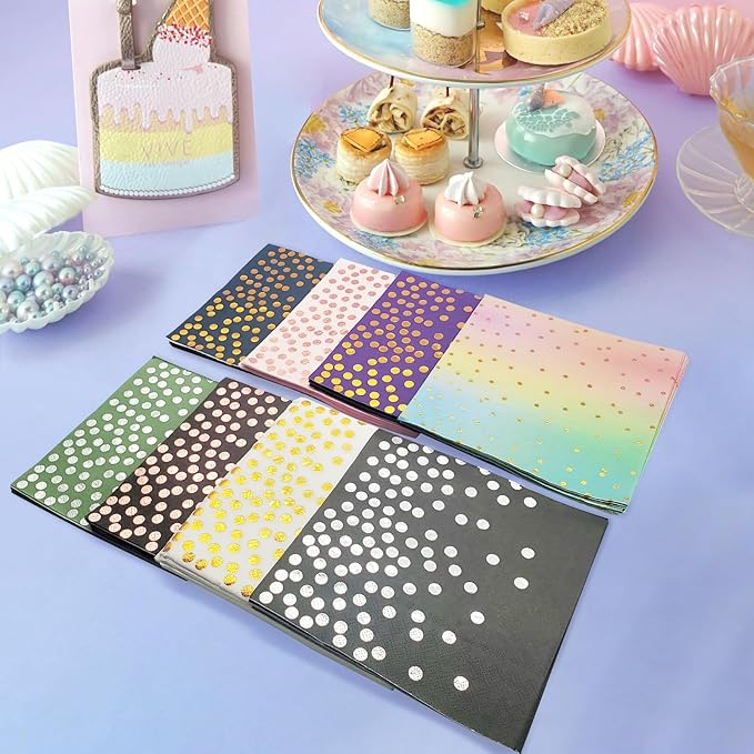 - Our gold dot cocktail paper napkins are made of virgin wood pulp make drying your hands easy thanks to their ultra-absorbency.without wearing down or easily tearing.single-use ensures sanitary conditions,and bring you and your guests a lot of convenience.