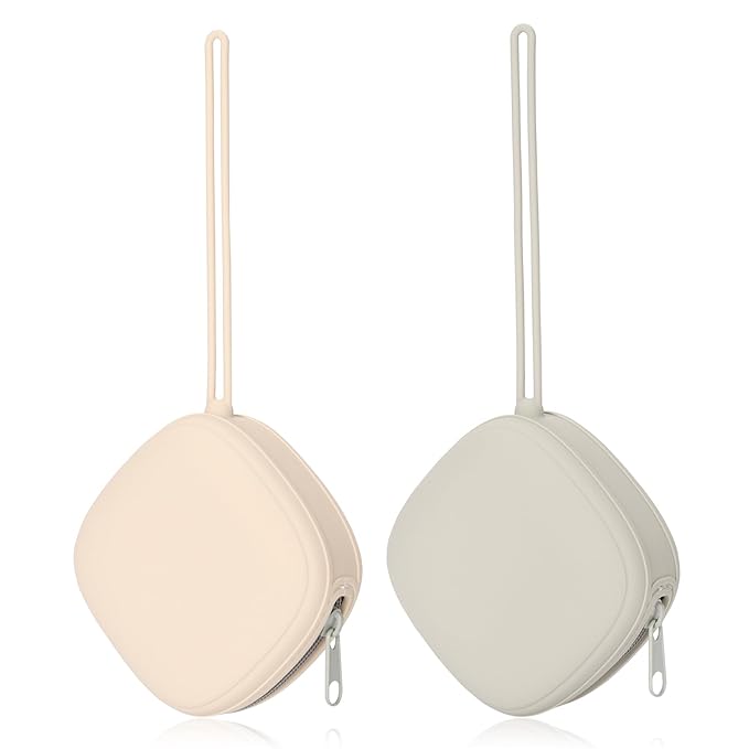 Silicone Pacifier Holder Case, Baby Binky Silicone Cover Pouch, Silicone Pacifier Storage Case for Diaper Bag, 2 Pack (Light Grey, Cream)