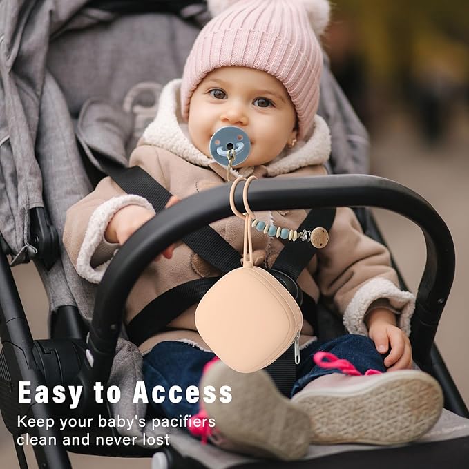 - Large Capacity Design: Our Silicone Binky Holder Case is not just for pacifiers! With its large capacity, it can also store baby teethers, earbuds, lip balm, keys, or coins, freeing up your hands and making it versatile for on-the-go use.