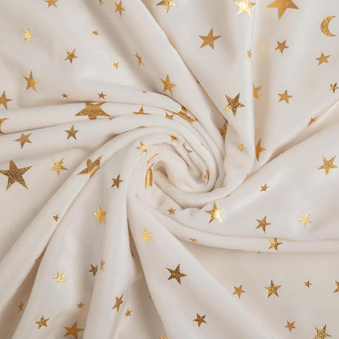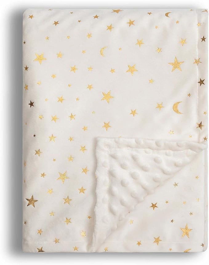 Baby Blanket for Boys Girls Soft Minky with Double Layer Dotted Backing, Star and Moon Printed 30 x 40 Inch Receiving Blanket (Beige)
