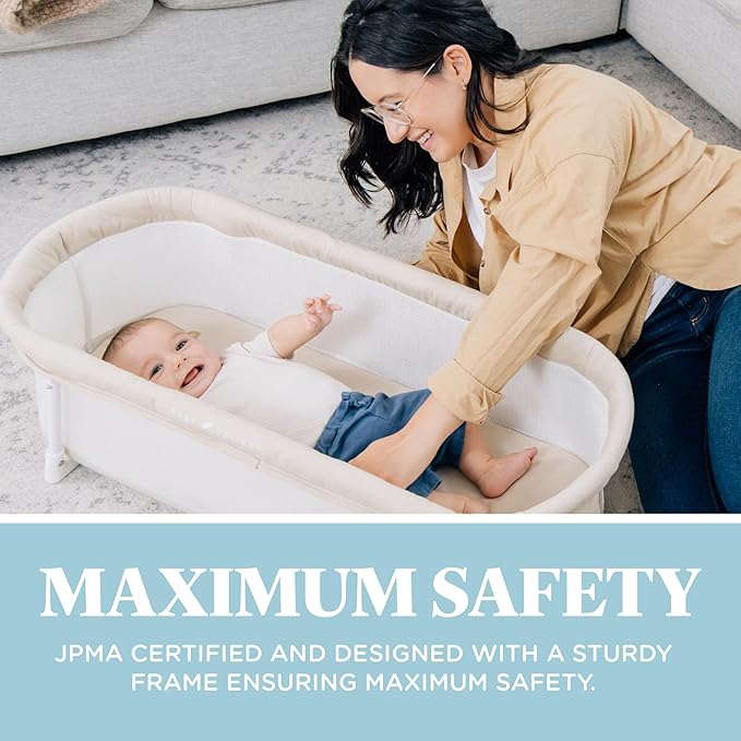 - MAXIMUM SAFETY AND STYLE: JPMA certified and designed with a sturdy frame ensuring maximum safety. You shouldn’t sacrifice safety for style, so we created this bedside bassinet to fit into any home. Recommended for up to 5 months of age or 20lbs.