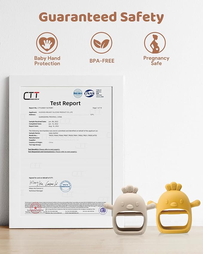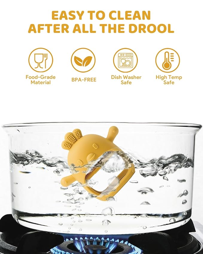 - 【Food Grade Soft Silicone】 Teethers are made of BPA free silicone with no small part to provide a strong, yet soft biting experience. The teething toy can be easily cleaned with a cloth, dishwasher and freezer safe. Our teethers exceed all government safety regulations and standards for parents' peace of mind.