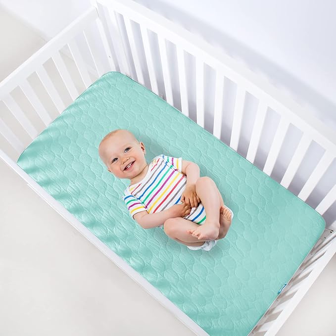 - Waterproof & Washable: Our waterproof crib mattress pad stands up well in washing by machine & dry, and in case of frequent accidents, we sweetly pack 2 for you - while one is being washed, the other protects your mattress as usual.