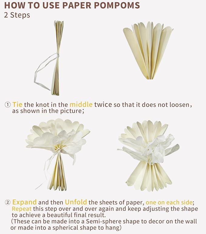 - Included Components : Banner, Tissue Pom Poms, Tassel Garland, Round Dots Garland, Paper Lanterns
