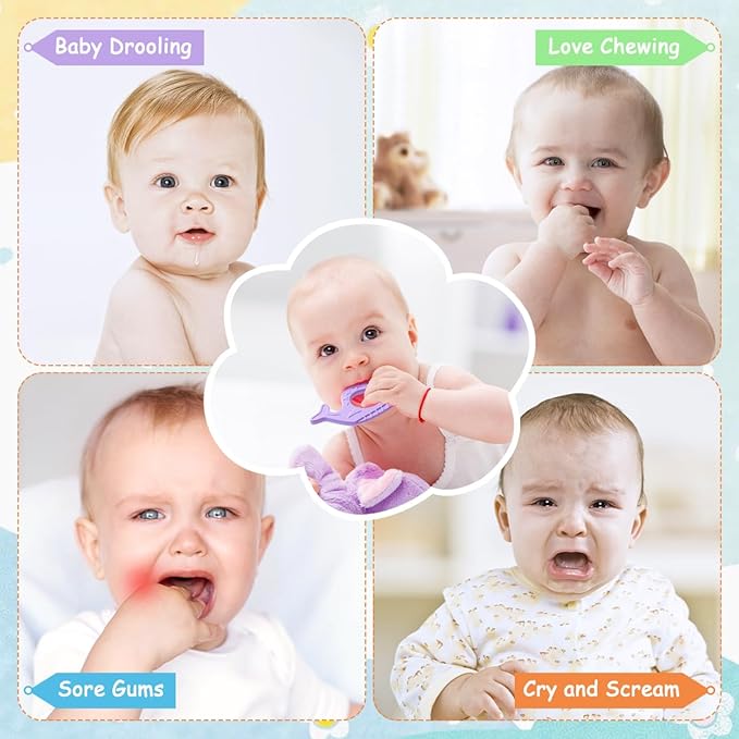 - [Teething Relief] Soft and safe silicone material, it massages your baby's delicate gums to help relieve pain and discomfort when your baby is teething, and massage your baby's oral muscles while chewing. as well as your baby's mood when teething.