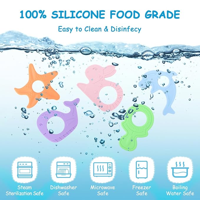 - [Easy to Clean & Sterilize] Our teething toys are easily cleaned and can withstand high temperature. You can boil them or use a high-temperature sterilizer to keep them clean, safe for dishwasher and freezer. Chilled for extra comfort.