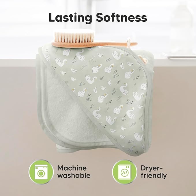 - Three Times the Absorbency β Made of viscose derived from bamboo, our baby towel absorbs water three times faster than cotton baby towels, keeping baby dry and clean quickly. Machine washable and dryer-friendly, it's a must-have baby bath essential.