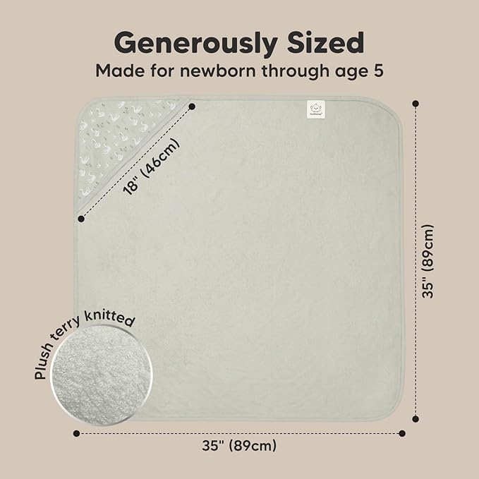 - Large and Durable Hooded Baby Bath Towels β Measuring 35" x 35", KeaBabies Hooded Baby Towels for newborn are built to be long-lasting even with repeated washes. The soft baby hooded towel can be use as your newborn grows into a toddler and up to age 5.
