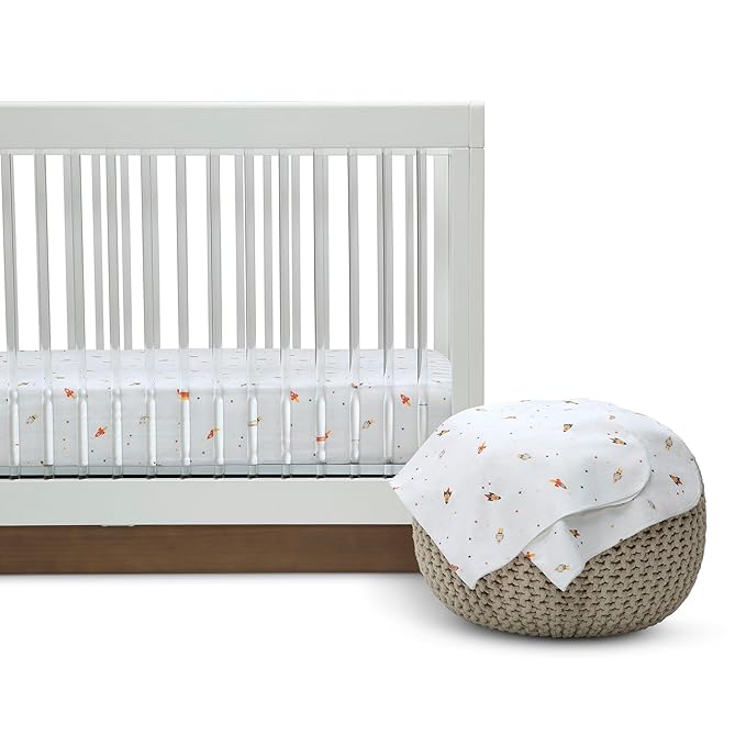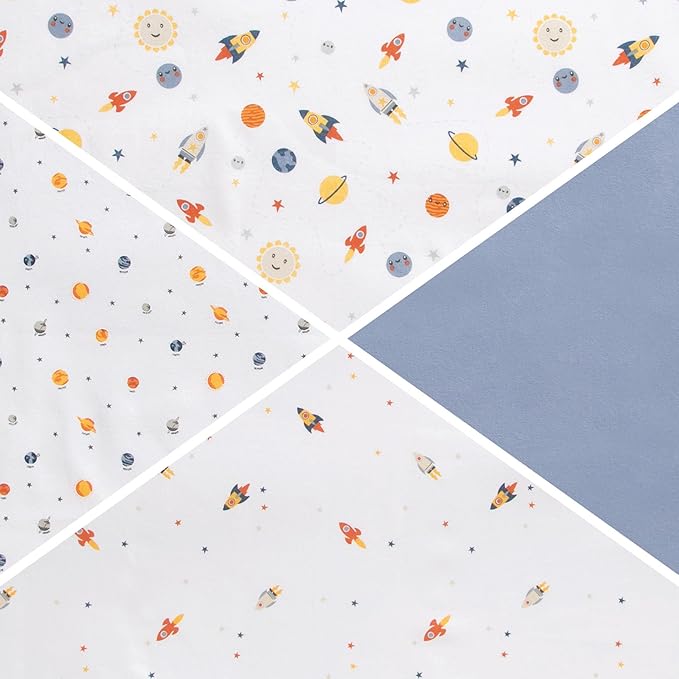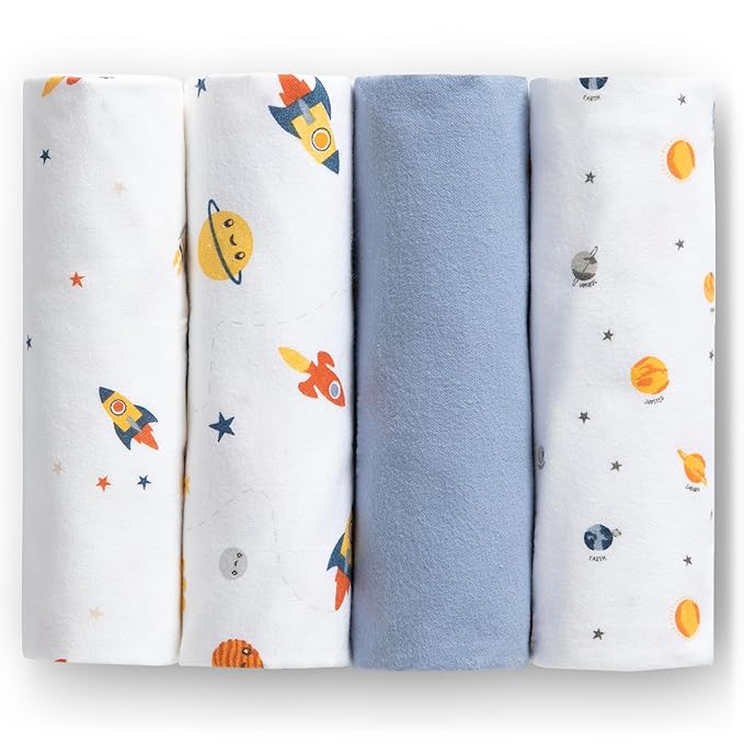 Delta Children 100% Cotton Flannel Baby Receiving Blankets for Girls and Boys – 30x30 Inches (Pack of 4), Space Exploration