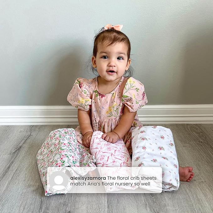 Delta Children Fitted Crib Sheets for Girls and Boys - Crib Sheet for Standard Crib and Toddler Mattresses - 28x52 Inch (Pack of 3), Pink Floral