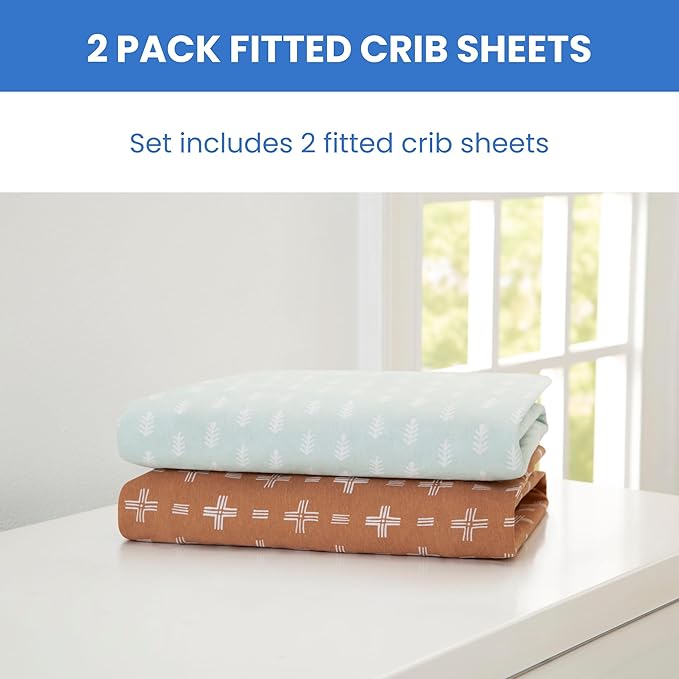 - 2-PACK FITTED CRIB SHEETS: Set includes 2 fitted crib sheets | Fits any standard crib or toddler mattress sized: 28โW x 52โL