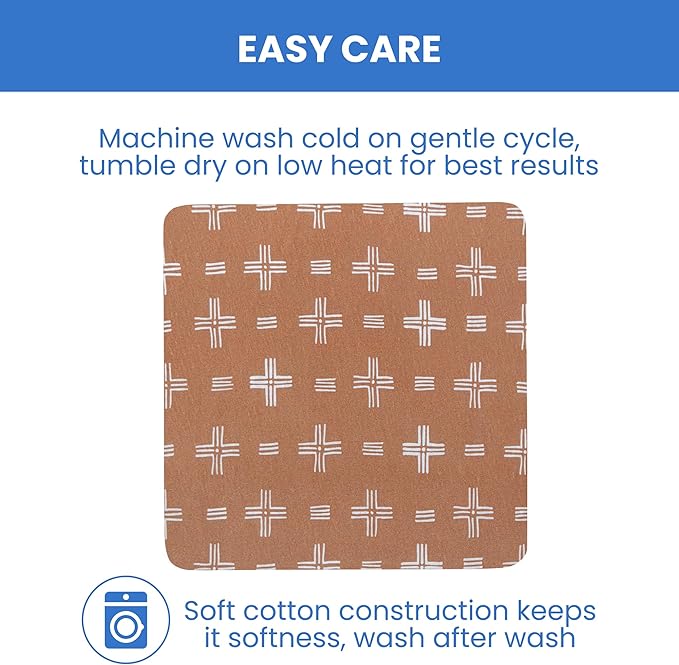 - EASY CARE INSTRUCTIONS: Machine wash cold on gentle cycle, tumble dry on low heat for best results | Soft cotton construction keeps it softness, wash after wash | Elastic edges around all 4 sides creates a safer, snugger fit