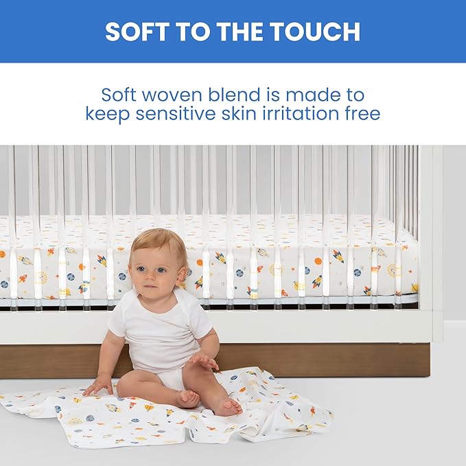 Delta Children Fitted Crib Sheets for Girls and Boys - Crib Sheet for Standard Crib and Toddler Mattresses - 28x52 Inch (Pack of 3), Space Exploration