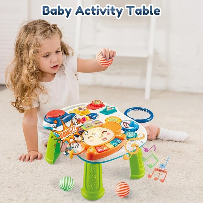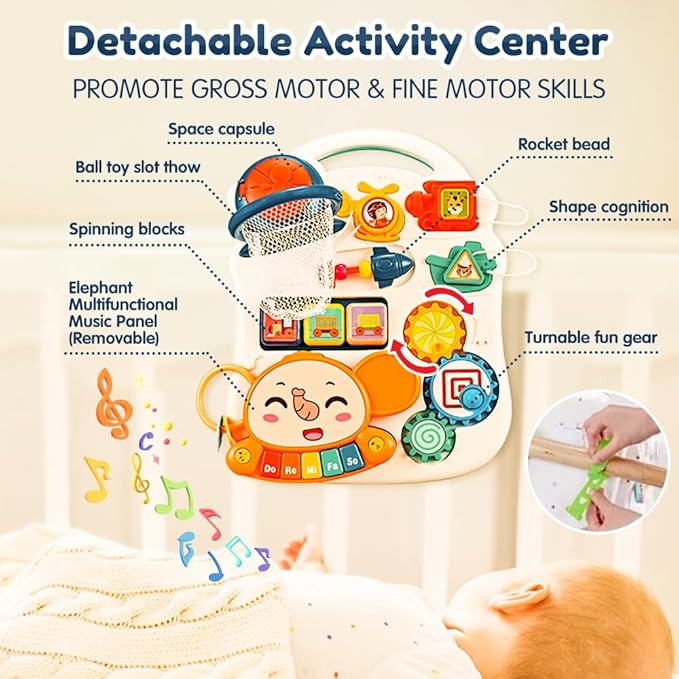 - Toddler Activity Center: Featuring shape-sorters,colorful spin rollers and cubes,basket and balls,The activity center is removable and can be assembled into a play table,this new design panel is very useful to help baby recognize colors and shapes,boost intellectual development and improve fine motor skills,encouraging your baby’s creativity