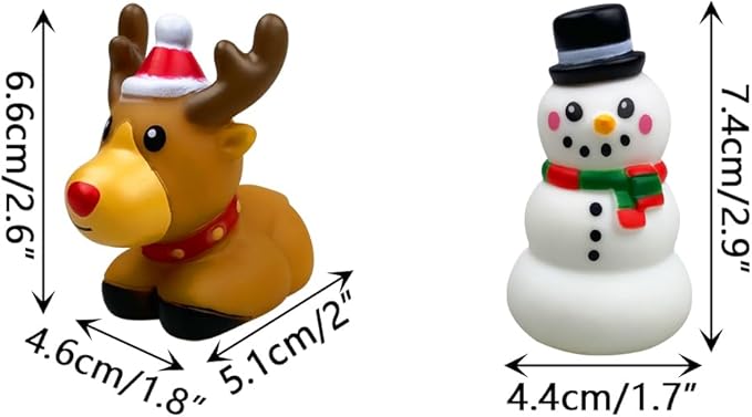 - Bath Toys - There are 6 styles bath toys in the pack - Santa Claus, gingerbread man, snowman, christmas tree, christmas unicorn, elk, - all in Christmas theme, very cute