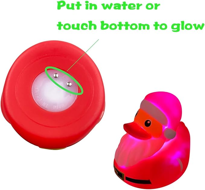 - Christmas Duck - The 6 pack light up ducks bath toys are designed as Christmas Theme, 6 different style, very cute, have a fun and Merry Christmas