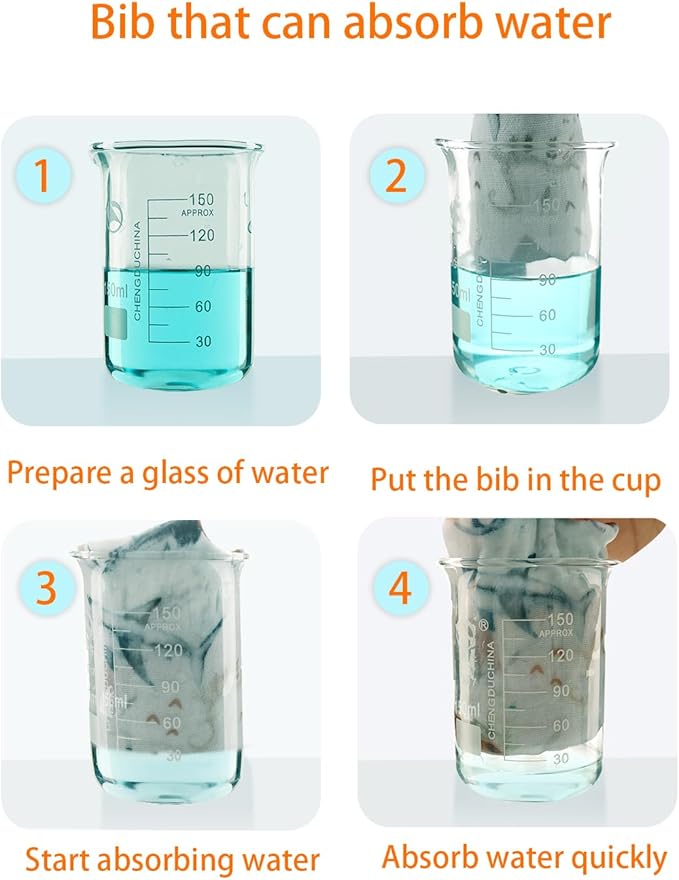 - ABSORPTIVE BIBS: Made of dual absorptive cotton on the front with polyester fleece on the back. Suit for teething babies. No more hunting, no more having it fall to the floor, No need for an extra thing to attach to him, Just put on a Teether Bib