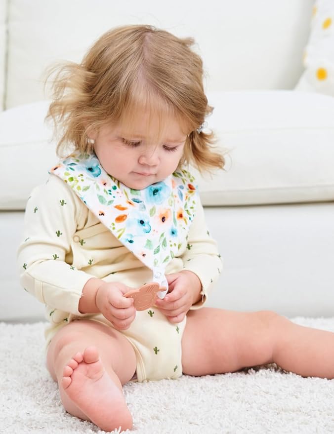 - TRENDY & STYLISH BABY FASHION ACCESSORY:Our baby bandana bibs have the newest design with top quality, soothing the pain from teething and making babies comfortable.Each bib with teether