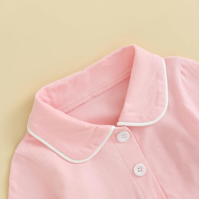 - Design: Baby girl sleepwear, baby girl two piece pajamas, ruffle sleeve button down shirt, solid pants, casual and fashion baby loungewear, suitable for baby autumn and winter wear