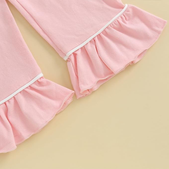 Toddler Kids Baby Girl Solid Pjs Ruffle Long Sleeve Button Shirt Top and Pants Cotton 2Piece Pajamas Set