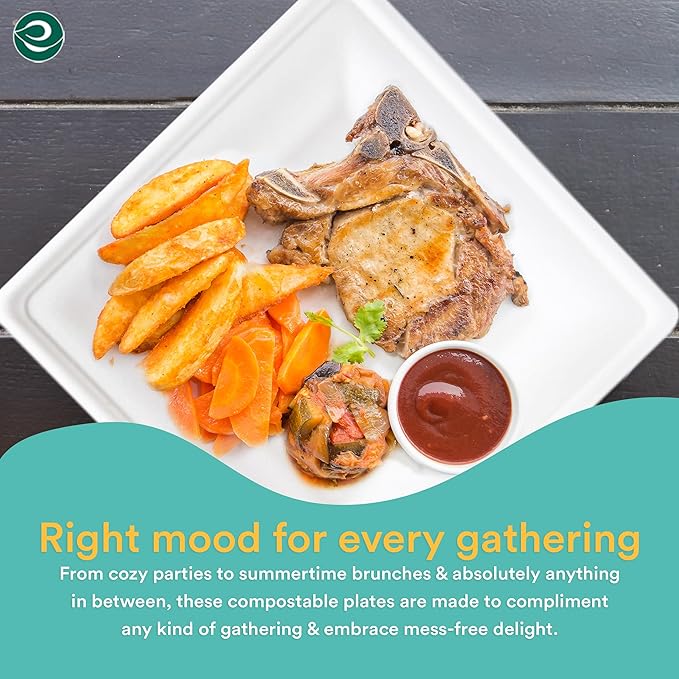 - ECO SOUL Pearl White Square Paper Plates (PFAS free) | 100% Compostable Disposable Bagasse I Heavy-Duty Eco-Friendly Dinner Plates I Biodegradable Sugarcane Eco Plates