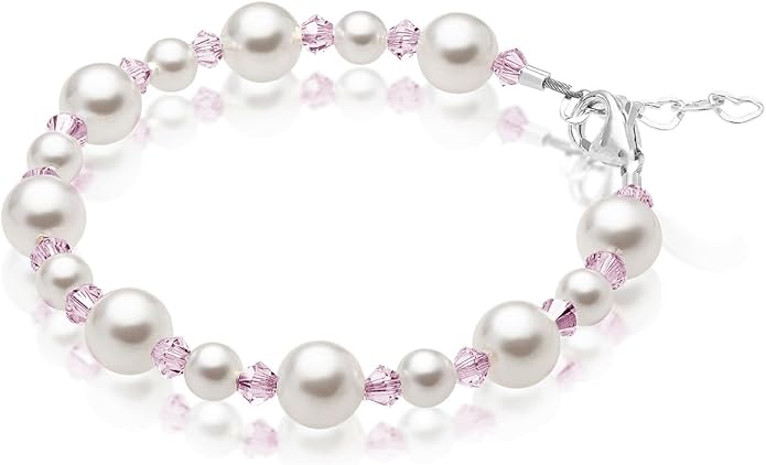 - EXCEPTIONAL QUALITY: Handmade in the USA, birthstone bracelets for women are made with high-end simulated Austrian Pearls, initial jewelry for flower girls, friendship bracelets, Baby Shower gifts