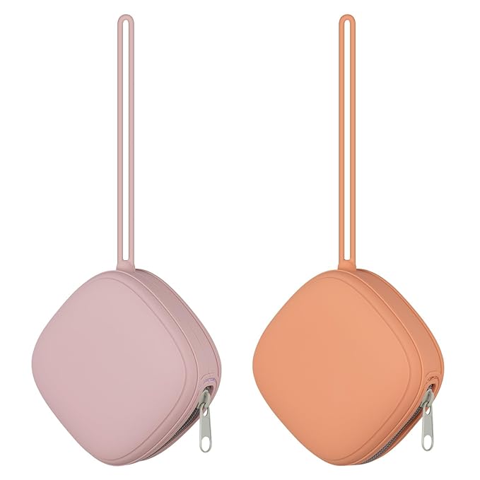 - 【MULTIFUNCTIONAL COMPANION】: Equipped with a 2-pack silicone baby pacifier holder case in neutral colors to make you and your little one's travel more stylish. Our pacifier pouch is large enough to hold up to 2 pacifiers or small essentials like pacifier clips, teether toys, and even earplugs, lip balm, and keys.