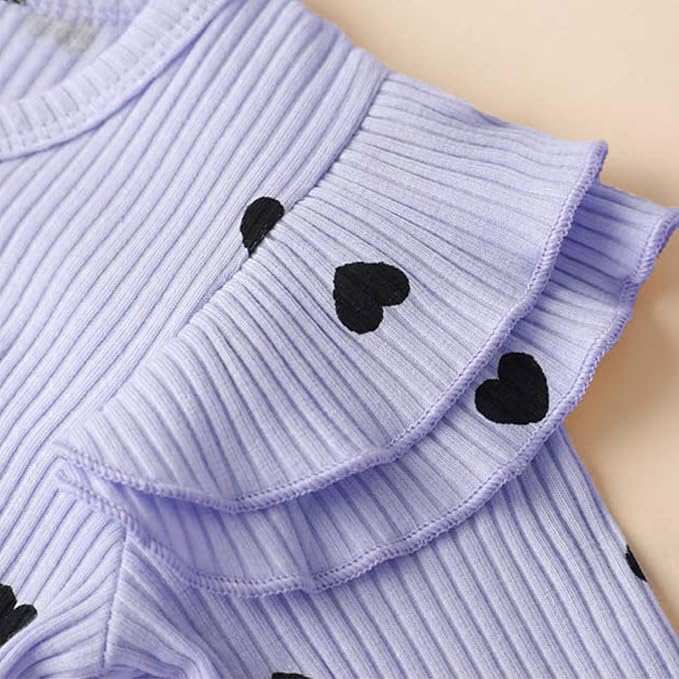 • Baby girl outfits with adorable heart prints express great love from family.The ruffled layered shoulder,frill pant and headband will highlight your beloved Baby beauty.
