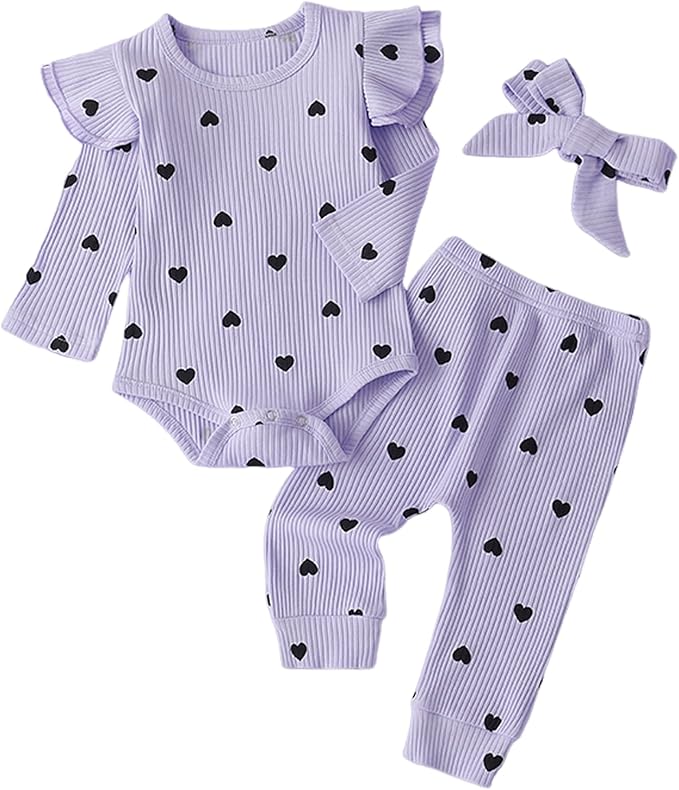 - Baby girl outfits with adorable heart prints express great love from family.The ruffled layered shoulder,frill pant and headband will highlight your beloved Baby beauty.