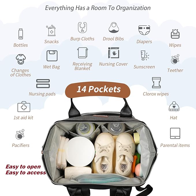 - Large Capacity Diaper Bag Backpack: Diapers Bag is a must-have for every parent. SUPROMOMI diaper bags is designed to meet all your needs. Whether you're going for a day trip or a weekend getaway, this diapers bag can carry everything you need. With its spacious compartments and multiple pockets, you can easily organize diapers, wipes, bottles, clothes, toys, and more. It's the perfect diaper bag for moms and dads.
