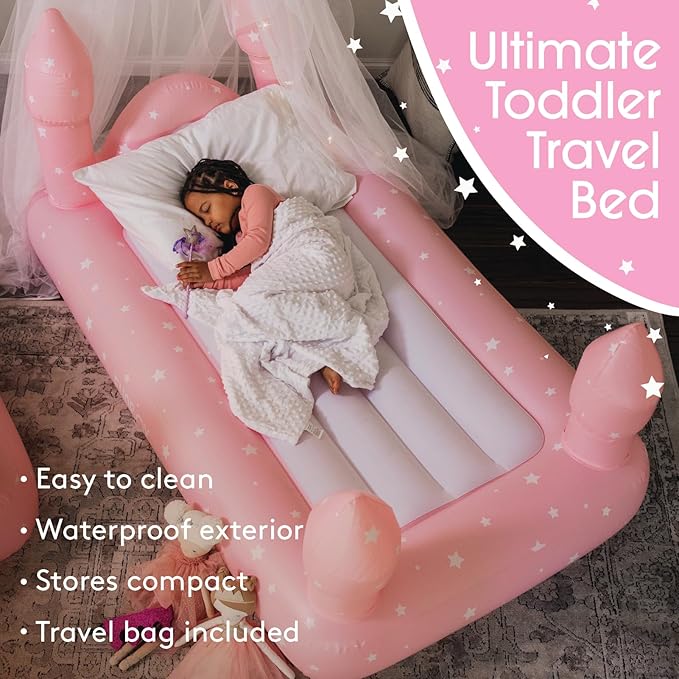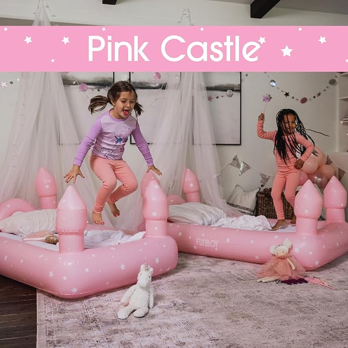 FUNBOY Kids Pink Castle Sleepover Travel Bed & Air Mattress. Perfect for Sleepovers. Includes Carrying Storage Bag, Twin